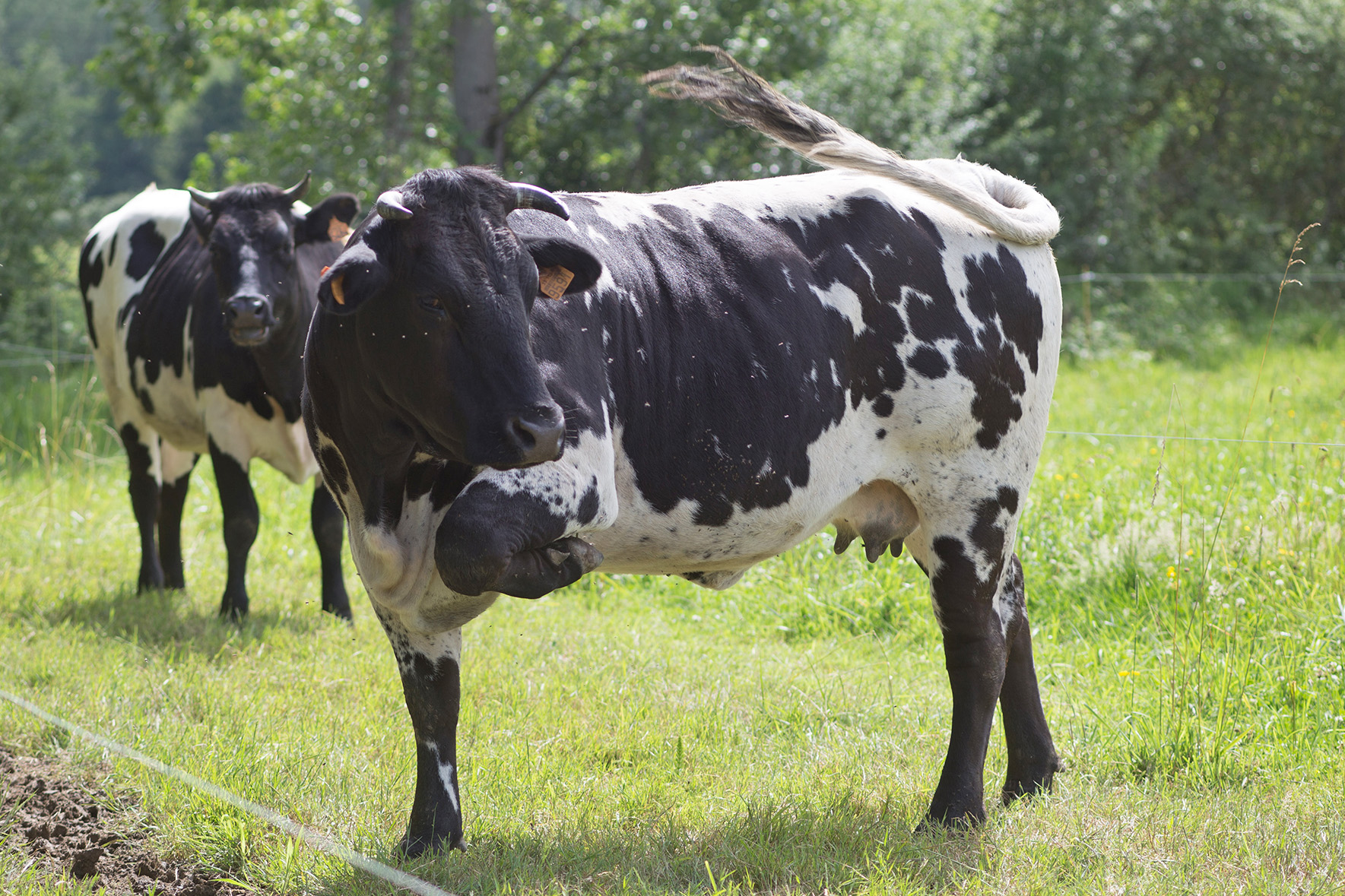Lors de la constitution du troupeau des mères et maintenant avec le taureau et l’insémination artificielle, nous recherchons la diversité génétique pour plus de résilience, et aussi pour proposer à la vente une grande variété de femelles typées pour la production de lait ou de viande. Les veaux et boeufs sont généralement vendus en caissettes en vente directe. Dociles, habitués aux gratouilles ainsi qu’à l’utilisation des cornadis.