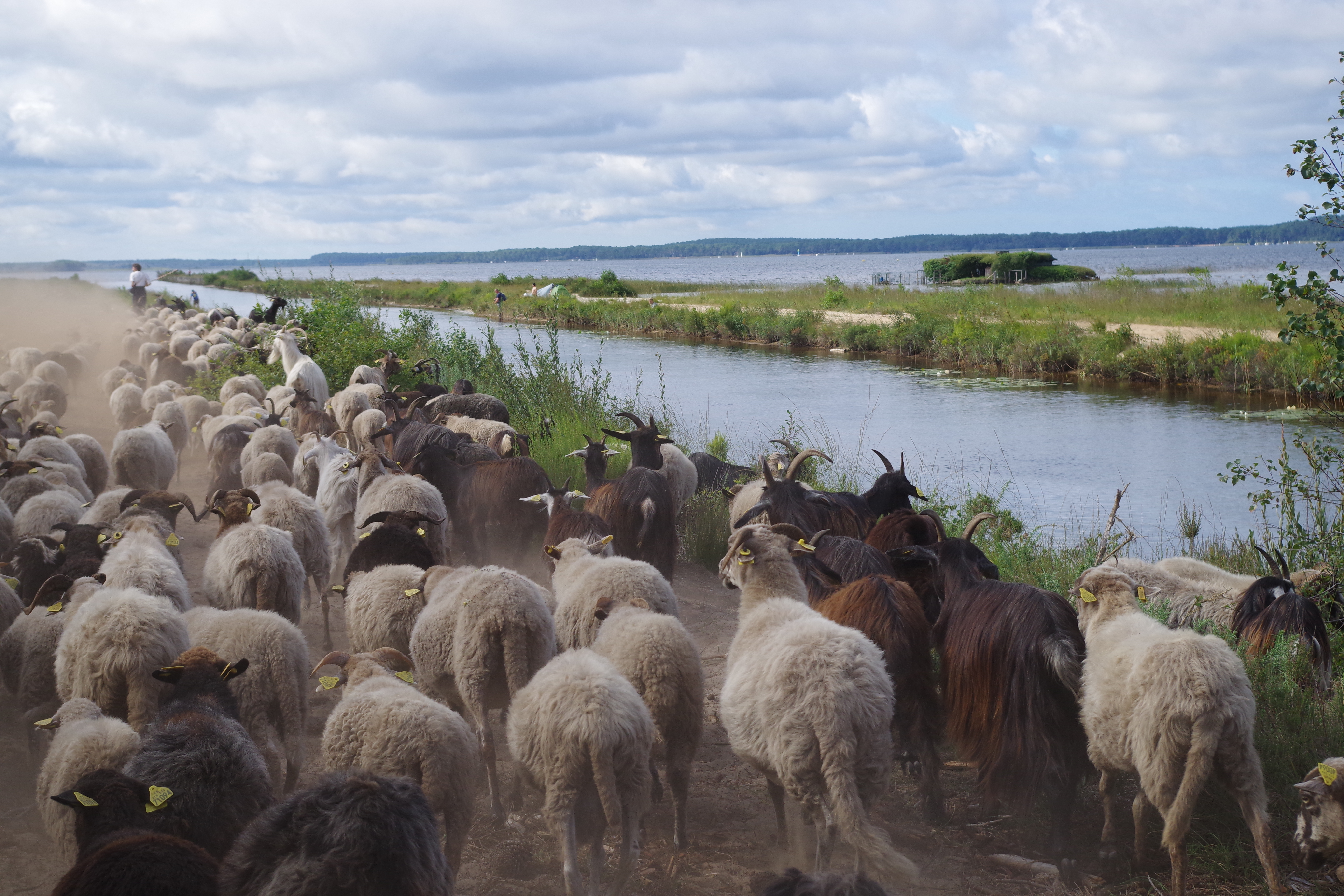 Jeudi 17 août, le troupeau de moutons Landais et des chèvres des Pyrénées du Conservatoire a effectué le 14e déplacement de la transhumance. Le troupeau s’est déplacé sur Lacanau pour atteindre leur nouveau parc situé proche de la marina de Talaris.