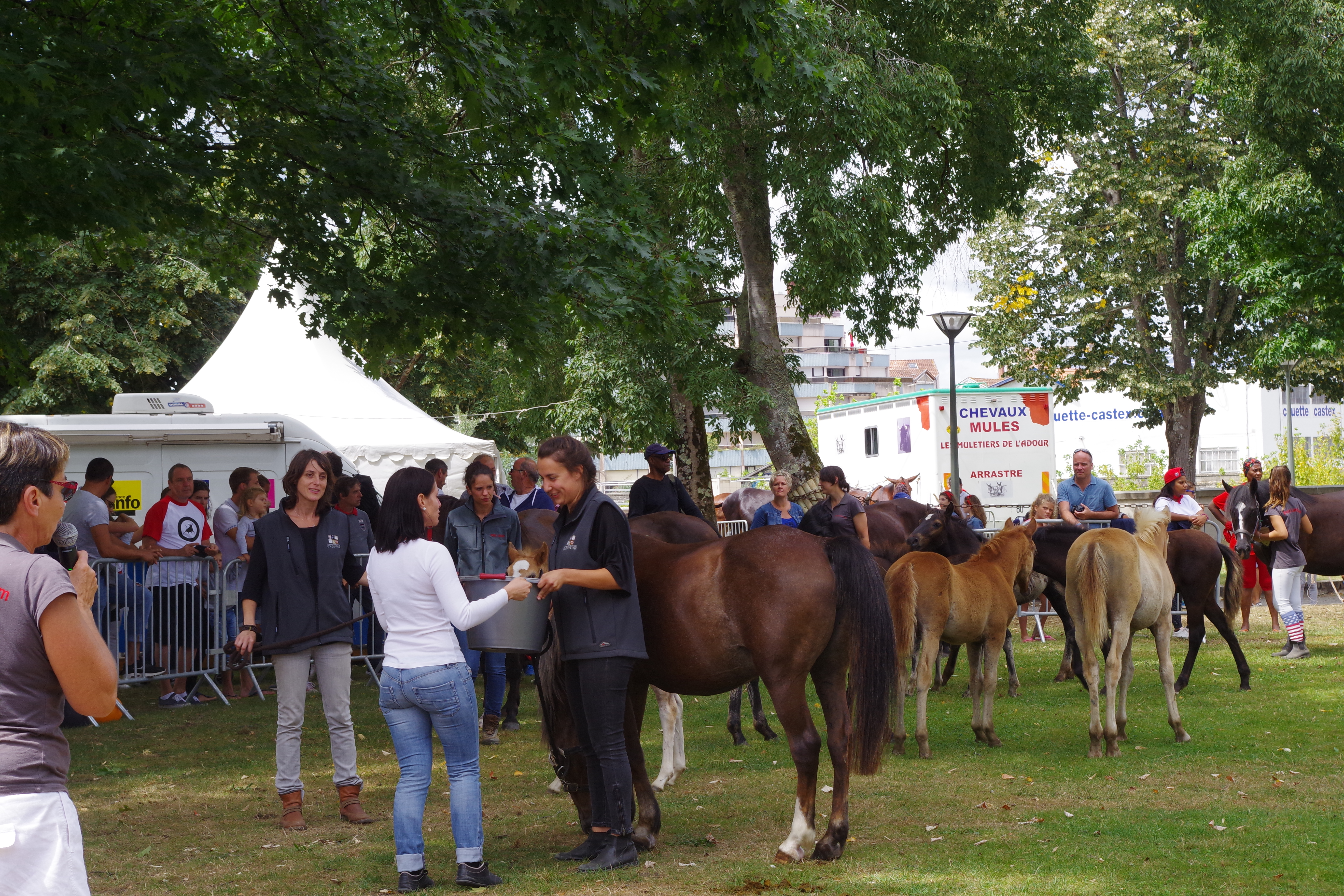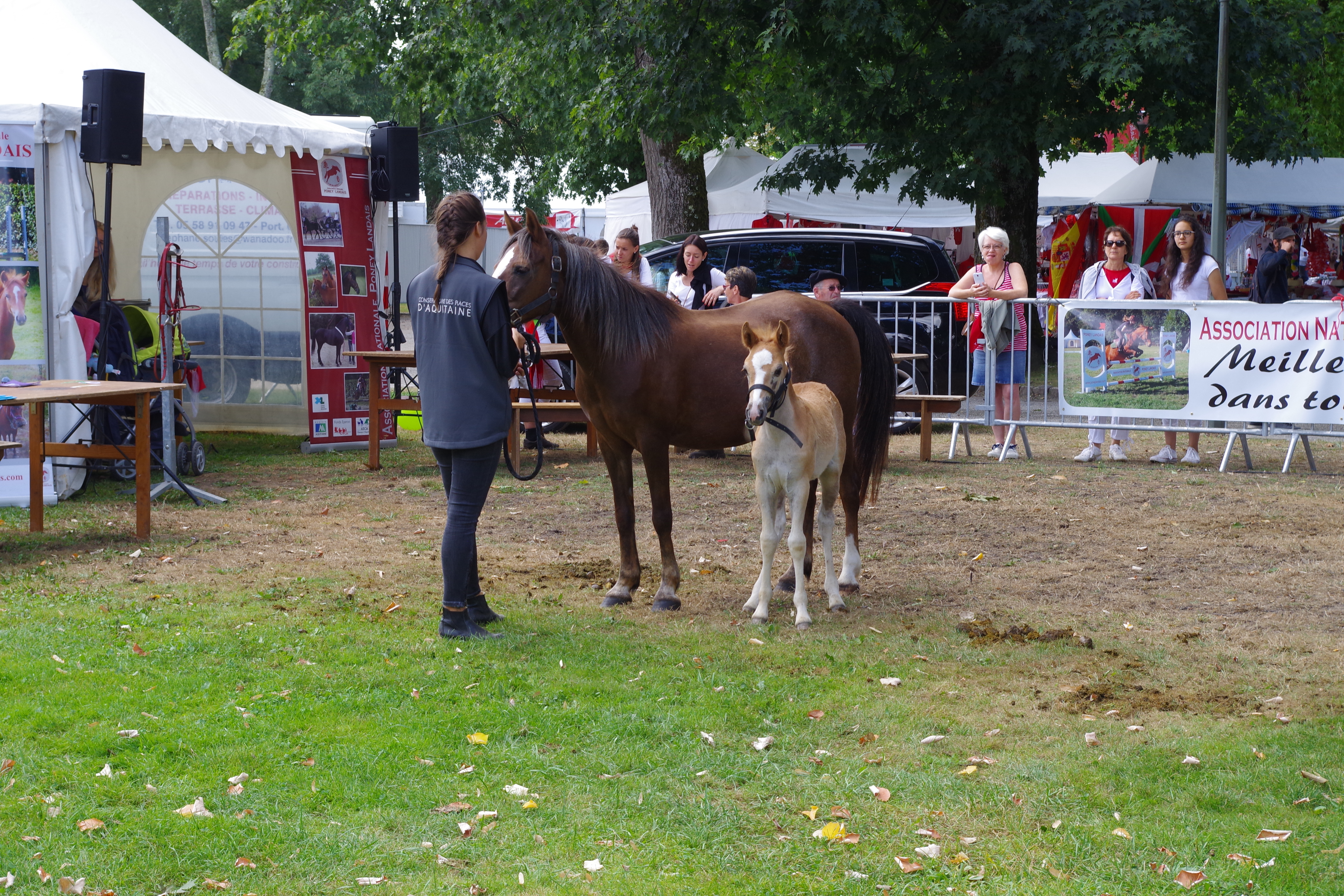 Le Conservatoire a aussi présenté Junon de Tambour, sa mère, qui avait été racheté suite à une carrière en club. A l’âge de vingt ans, elle a été mise à la reproduction dans le cadre du programme de sauvegarde du poney Landais. Ce projet est en cours depuis 3 ans. Hallelujah, née le 7 juillet 2017, représente une première victoire pour l’association. Dans la catégorie des poulinières non suitées, Florianne Bellettini présentait Riva, une ponette du Conservatoire. Chaque année les Férias de Dax réunissent des personnes de la France entière. Cet événement permet au public d’être auprès des poneys et d’assister au concours, suivi de tests de tempérament simplifiés qui sont effectués sur les femelles poney Landais de moins de deux ans. Le Conservatoire espère à nouveau présenter Hallelujah l’année prochaine ainsi que de nouveaux poulains pour la sauvegarde du poney Landais.