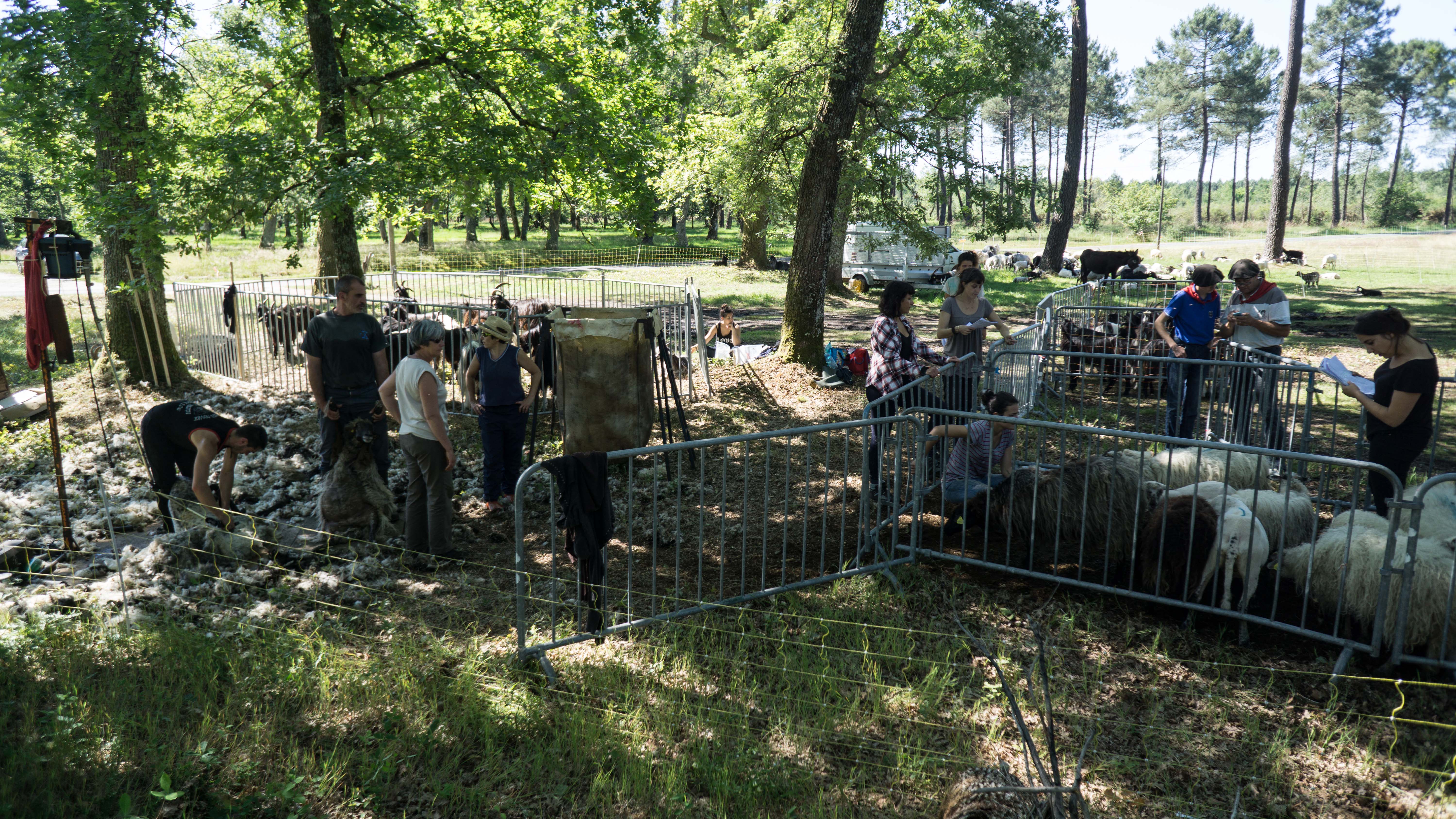 De nombreux bénévoles et éleveurs de moutons Landais sont venus prêter main forte pour les différentes opérations : attrapage, inventaire, tonte, bouclage, prélèvements sanguins et prophylaxie.